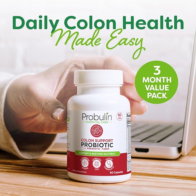 Probulin Colon Support Probiotic Supplement, Daily Gut, Digestive, and Immune Health Probiotics Capsules for Men and Women, 20 Billion CFU, Vegan, 90 Count Bottle