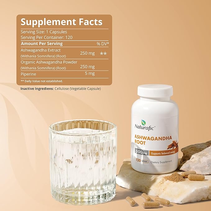 - πΉ Premium Ashwagandha Root β Each capsule contains 500mg of pure Ashwagandha root, a traditionally used herb known for its role in supporting general wellness.