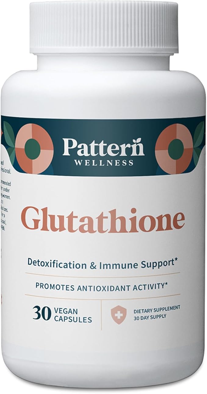 Pattern Wellness Glutathione Supplement - Active Reduced Glutathione Formula with Added Vitamin C - Cell, Antioxidant, + Immune Health Support - 30 Vegan Capsules