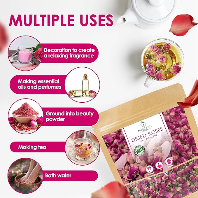 Nhat Anh Farm - Premium Dried Rose Buds - 3.5oz (100g) Dried Rose Buds Natural & Pure, Sugar/Caffeine/Gluten Free - For Making Tea