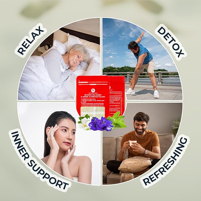 - ๐ต [๐๐ง๐๐จ๐ฎ๐ซ๐๐ ๐๐ฌ ๐๐๐ฅ๐๐ฑ๐๐ญ๐ข๐จ๐ง] The gentle properties of jasmine and butterfly pea flower provide a calming effect, making this tea an ideal choice for unwinding and enjoying peaceful moments.