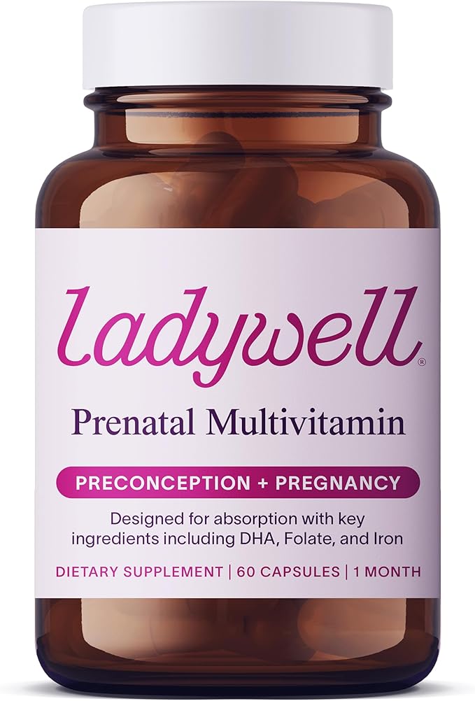 Ladywell Prenatal Multivitamin | Conception, Pregnancy & Postpartum | Key Ingredients Including DHA, Folate & Iron | Expertly-Formulated & Tested | Designed for Absorption with Nausea Support, 60 Ct
