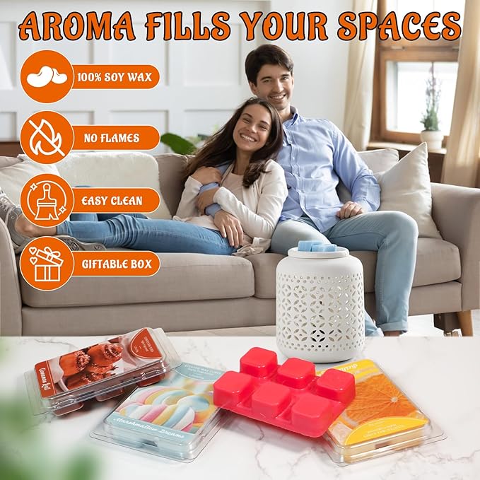 - Wax Melts Scent: Cinnamon Roll, Salted Caramel Cream, Marshmallow Dreams, Sicilian Lemon, Golden Apple, Vanilla Cake. It gives you a comfortable sense of relaxation and makes you want to slow down and enjoy the peaceful time
