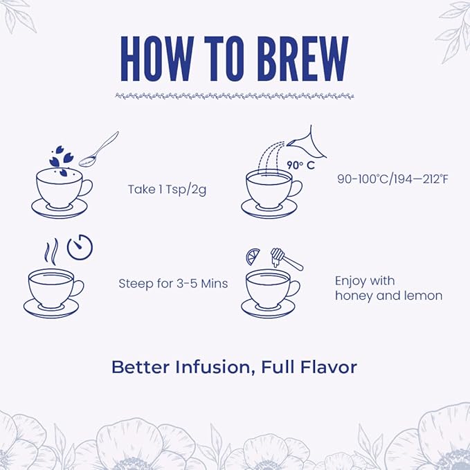 - SIMPLE BREWING: Brewing your perfect cup is simple. Just steep 1-2 teaspoons of loose tea in hot water for 5-7 minutes. Adjust the steeping time to your preference for strength and flavor.