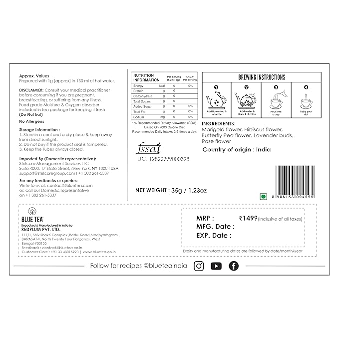 - UPLIFTING FARMERS: At Blue Tea India, we are dedicated to improving farmers' lives by boosting their income from Rs.6000 to Rs. 25000 per month. Our efforts aim to positively impact 1,000 families by March 31, 2025. By choosing our tea, you support this mission and contribute to a brighter future for our hardworking farmers. Together, we are creating better livelihoods and empowering communities, one cup of tea at a time.