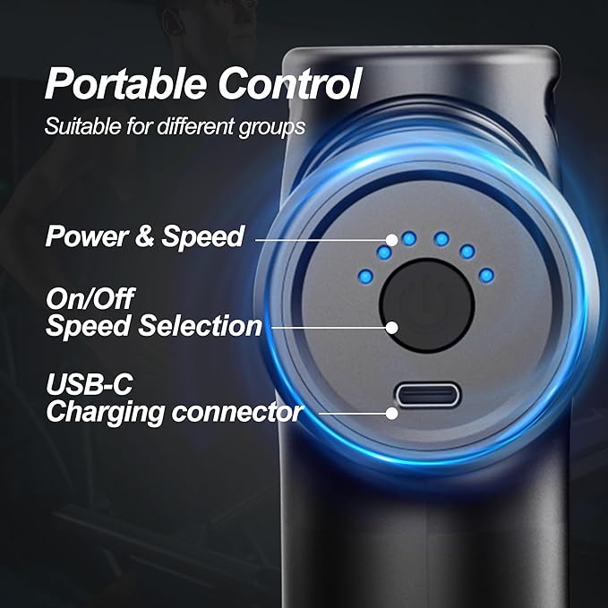 - 【Multiple Intensity Options】The massage gun has 6 speed levels. With the use of a pressure sensing system, you don't need to adjust the speed frequently. You just need to master the skills to relieve the soreness of deep muscle tissue effectively.