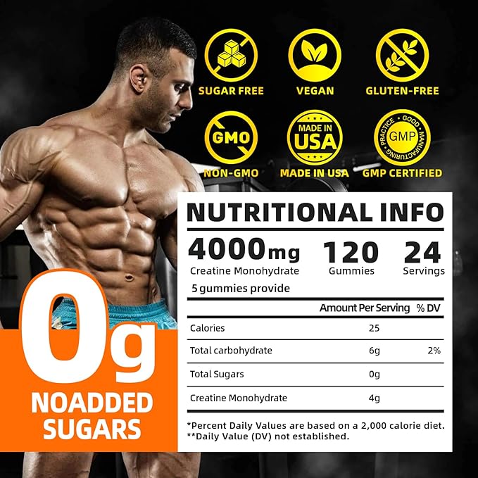 - Convenient & Delicious: Perfect for on-the-go, these gummies fit easily into your gym bag or pocket. With 4g of creatine per serving and a natural orange flavor, they provide a tasty alternative to traditional creatine supplements, making your fitness routine both enjoyable and effective