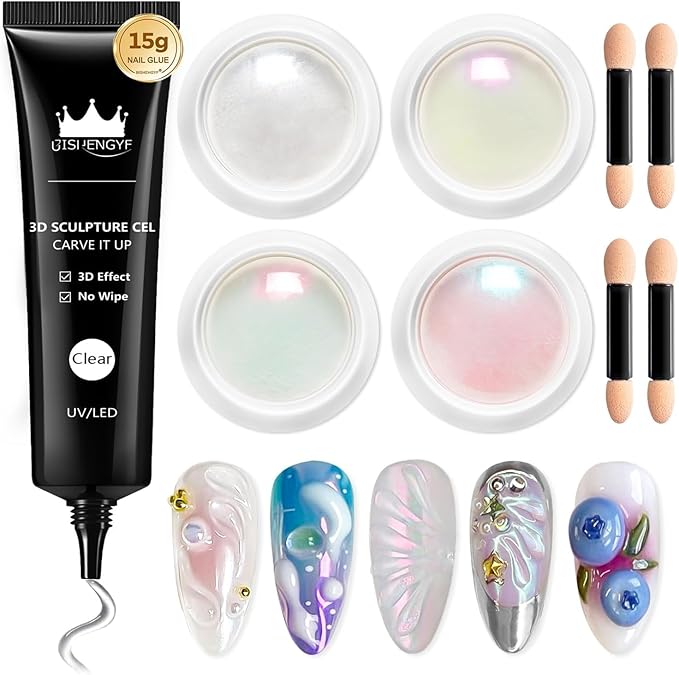 - Multifunctional Non-Sticky 3D Nail Gel: Our 3D gel nail kit is designed for nail extension, 3D carving, nail shaping, chrome powder and sequin decoration, enabling intricate 3D nail art designs with ease. Compatible with U V gel, gel polish and more, catering to all nail art enthusiasts looking for a versatile 3D nail gel and chrome powder solution.