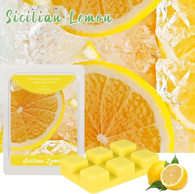 - Fragrance: Infuse your space with the vibrant, zesty scent of fresh Sicilian lemons. Our melting wax delivers a refreshing and invigorating fragrance that brings a touch of sunshine to any room