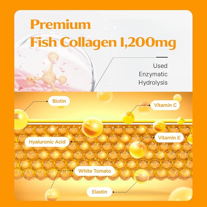 - MARINE COLLAGEN : Marine collagen is the purest form of collagen. Compared to bovine collagen, it is more bioavailable which means can be absorbed more quickly(1.5 times better) into the body.