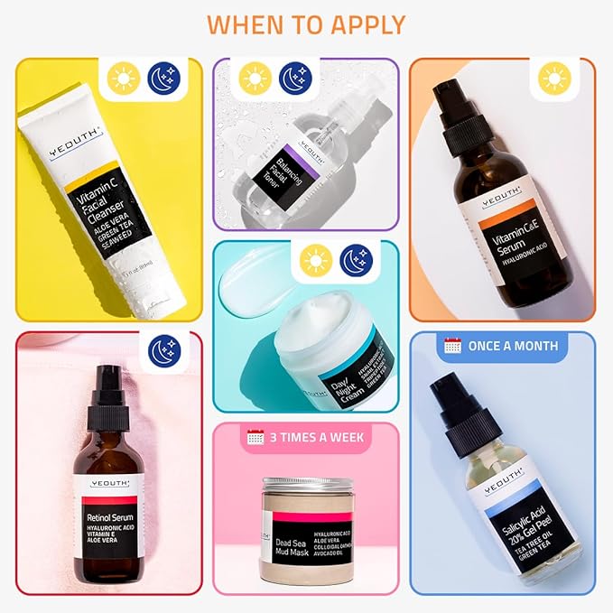 - Total Skincare Set: YEOUTH Vitamin C Cleanser, Face Toner, Vitamin C Face Serum, Retinol Serum, Face Cream, Face Peel & Face Mask. Owned by a Cosmetic Chemist. Dermatology Tested. Enjoy a complete skincare routine from YEOUTH!