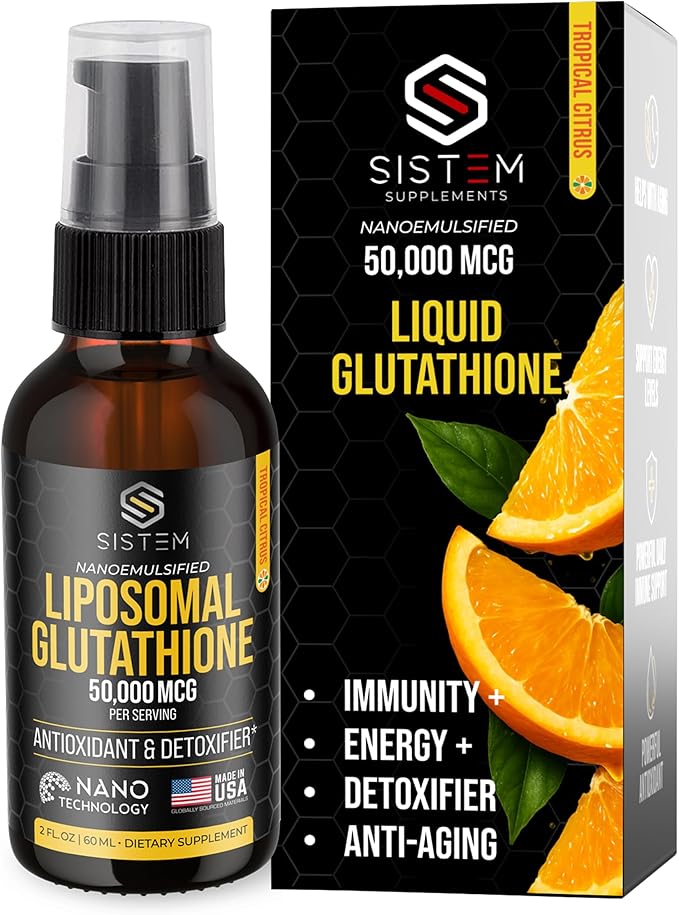 Sistem Liposomal Glutathione Supplement, Antioxidants, Detox Cleanse, Immune Support Supplement, Vitamin C, Liposomal Spray, Glutathione Serum, Tropical Citrus Flavor