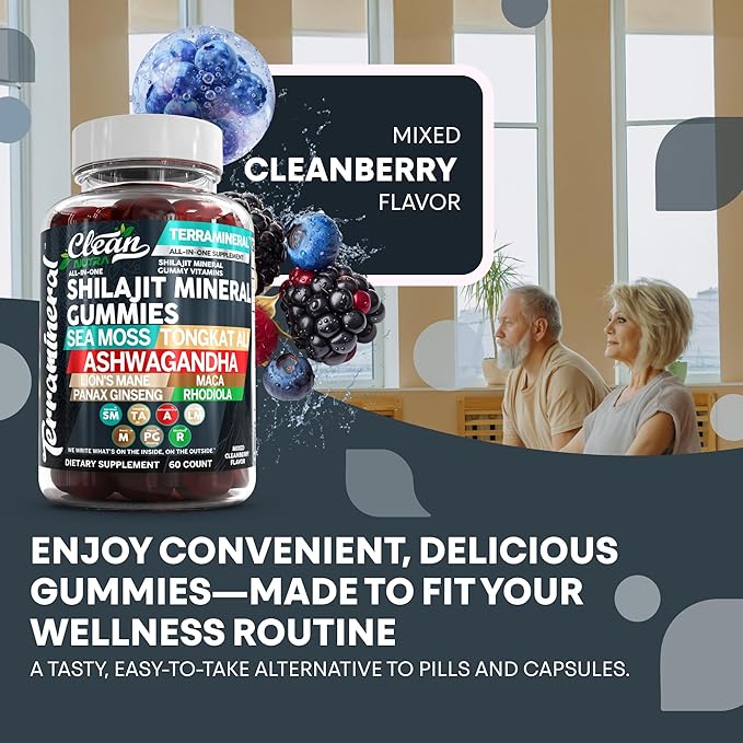Terramineral Shilajit Gummies with Irish Sea Moss Tongkat Ali Ashwagandha Lion's Mane MACA Panax Ginseng Rhodiola & Cordyceps by Clean Nutra (1)