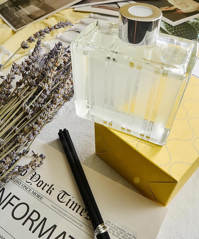 - Scent Reed Diffuser - M&SENSE reed diffuser set comes with 7 oil diffuser sticks, an elegant glass vessel with premium natural essential oil (7.04oz/200 ml). This scented Diffuser can provide a continuous fragrance for 60 to 90 days.