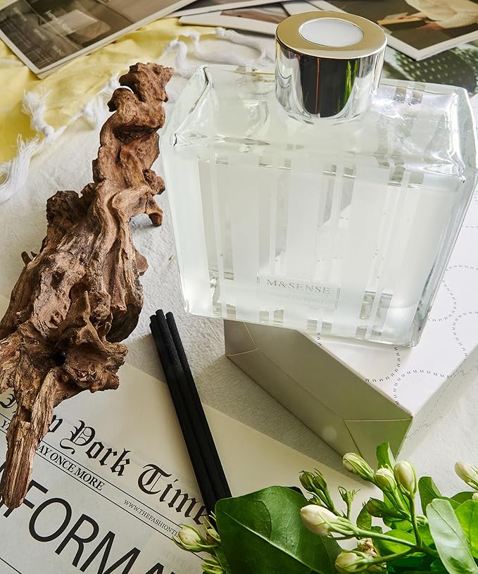 - Scent Reed Diffuser - M&SENSE reed diffuser set comes with 7 oil diffuser sticks, an elegant glass vessel with premium natural essential oil (7.04oz/200 ml). This scented Diffuser can provide a continuous fragrance for 60 to 93 days.