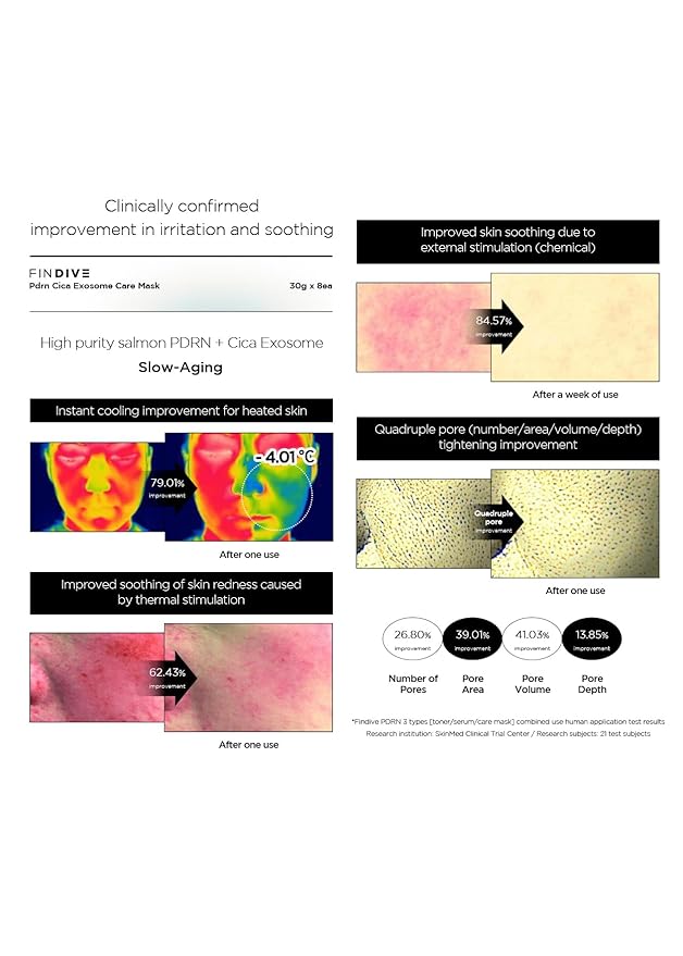 FINDIVE OFFICIAL PDRN CICA Exosome Care Mask, PDRN (Sodium DNA) 5,000ppm, Cica Exosome, Marin Collagen, Soothes, Regenerates Skin, 1.05fl.oz*8
