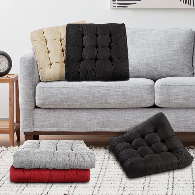 - COMFORTABLE SUPPORT: The floor cushion has nine tufted points to prevent deformation, enhancing seating/kneeling comfort, relieves pressure on your hips and legs, offers back support, pain relief and increase stability, allowing you to relax comfortably for long periods during meditation or yoga.