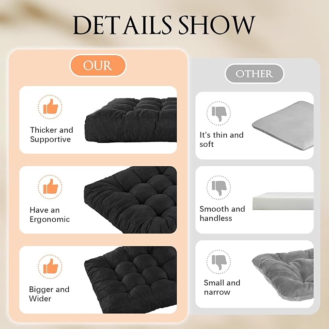 - THICKER AND WIDER: The 20x20x4 inch meditation floor pillows 2 kids or 1 adult comfortably, and has 7 colors to choosen, and match any room and furniture, while its vivid colors brighten any home decor.