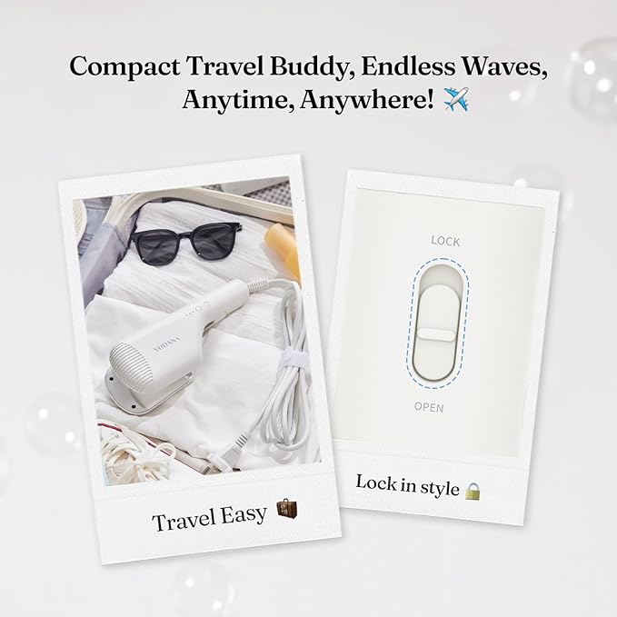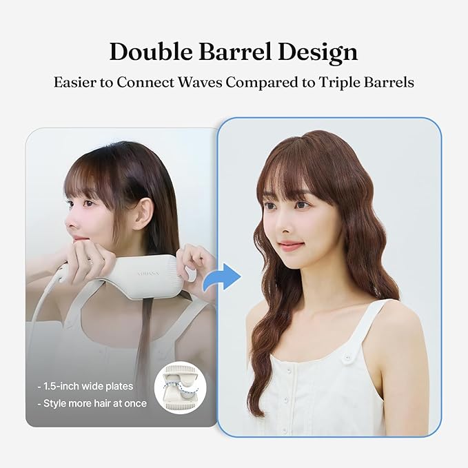 VODANA Compact Triple Flow Hair Waver - Portable Ceramic Curling Iron, Long-Lasting Beach Waves, Fast Heat-Up Double Barrel (1.5 inch, Ivory)
