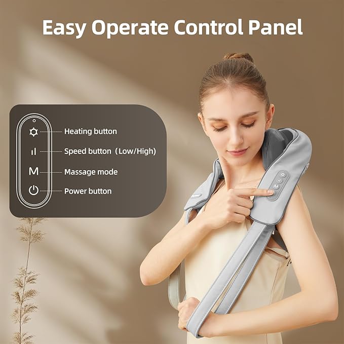 - Soothing 2 Levels Heating:Built-in heating function with simple control helps relax tight muscles and enhance blood circulation. Ideal as a neck massager with heat for tension relief and relaxation.