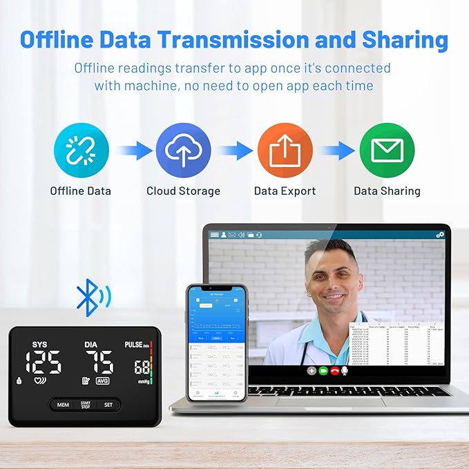 - Track Trends Export and Share Data Anytime: Seamlessly connect the BP machine with ZOETOUCH Health App to analyze trends by week, month, or year; Store data in the cloud for long-term saving and download; export the reports and share it to your personal doctor--all while keeping your health records secure