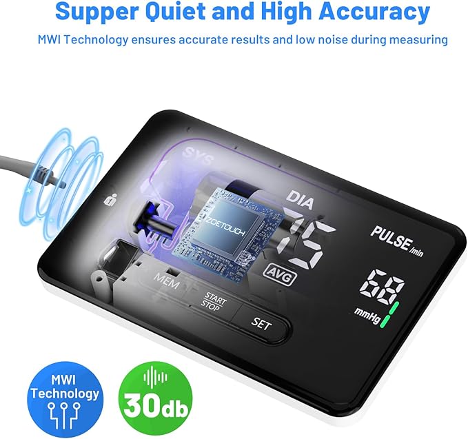 - Accurate Blood Pressure Monitor: Each ZOETOUCH high blood pressure machine adopts high-precision chips and MWI technology to deliver clinically accurate results every time, it’s a reliable automatic sphygmomanometer that you must have for home blood pressure monitoring