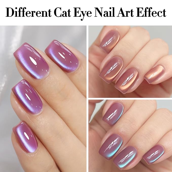 - Cat Eye Gel Nail Polish Set: Double Rhythm cat eye gel nail polish kit includes 6colors 7.5ml / 0.25 fl.oz gel nail polish. This cat eye gel nail polish set includes.Each kit comes with one magnetic tool for you to create a different cat eye style for your nails.