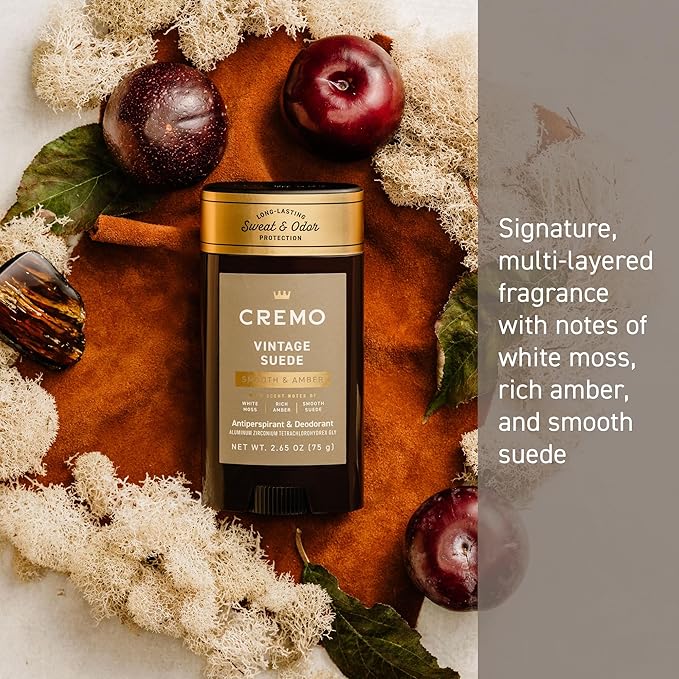 Cremo Vintage Suede Antiperspirant & Deodorant for Men, 48-hour Sweat and Odor Protection, 2.65oz