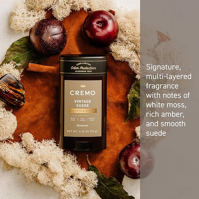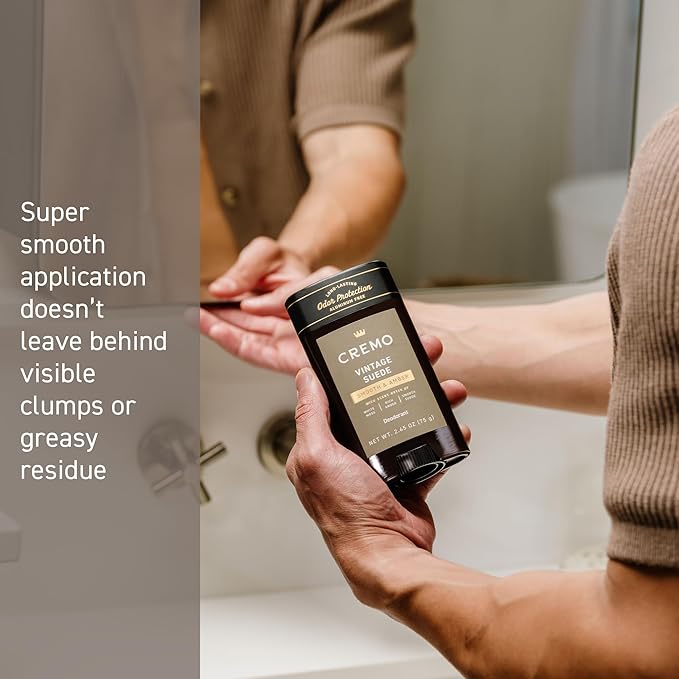Cremo Vintage Suede Aluminum Free Deodorant for Men, 48-hour Long Lasting Odor Protection, 2.65oz