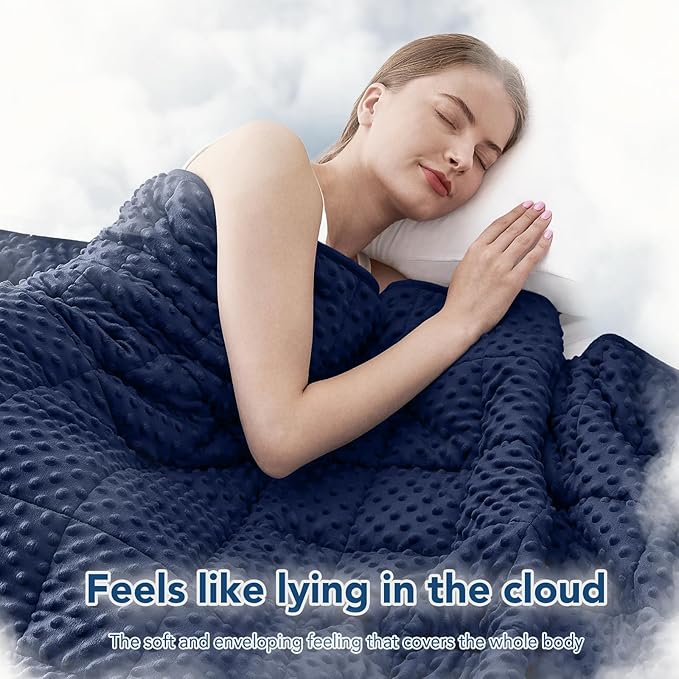 Topcee Weighted Blanket for Adults (20lbs 60"x80"), Minky Dots Heavy Blanket for 190-210lbs Sleeping, Soft, Cozy and Cooling Weighted Throw Blankets, Machine Washable, Blue