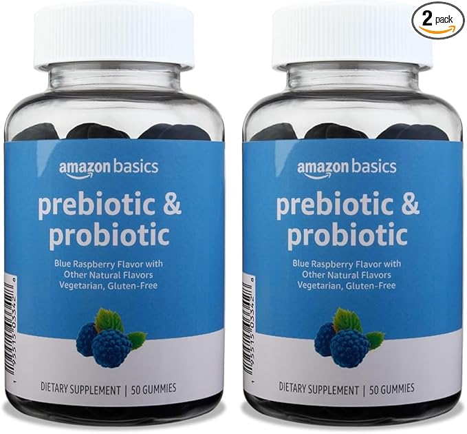 Amazon Basics Prebiotic & Probiotic Gummies, 2 Billion CFU, Blue Raspberry, 50 Count (2 per Serving) (Previously Solimo) (Pack of 2)