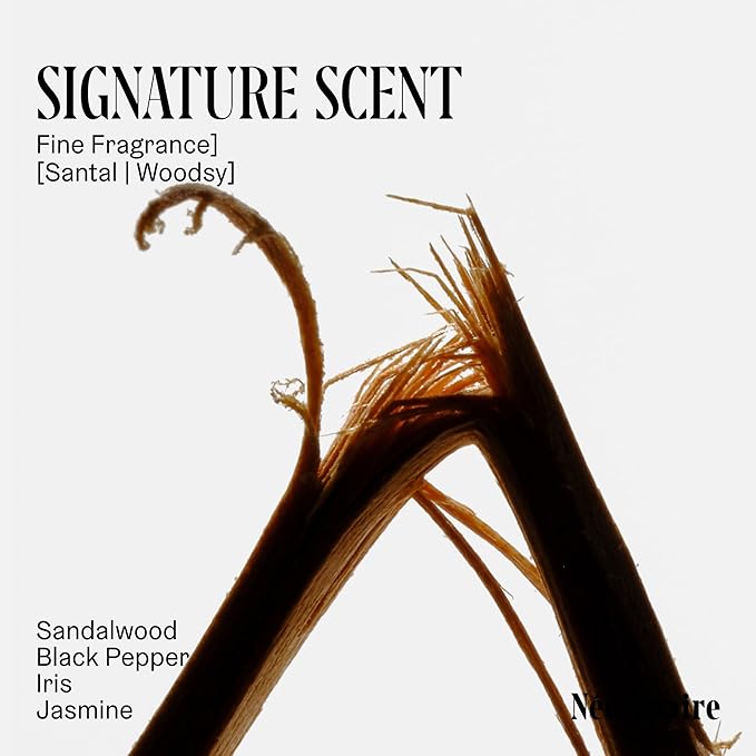 - SIGNATURE SANTAL SCENT: Sandalwood oil enhanced with suede, black pepper, and iris creates a refined aromatic experience that lingers lightly on skin.