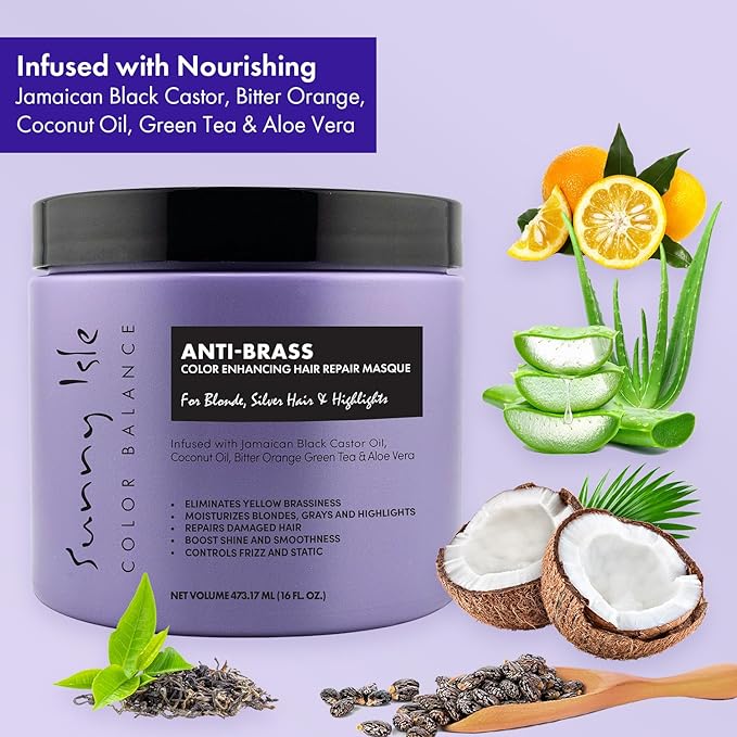 - ANTI-BRASS HAIR REPAIR MASQUE: Sunny Isle Color Balance Anti-Brass Hair Repair Mask eliminates brassiness and unwanted dull yellow undertones.