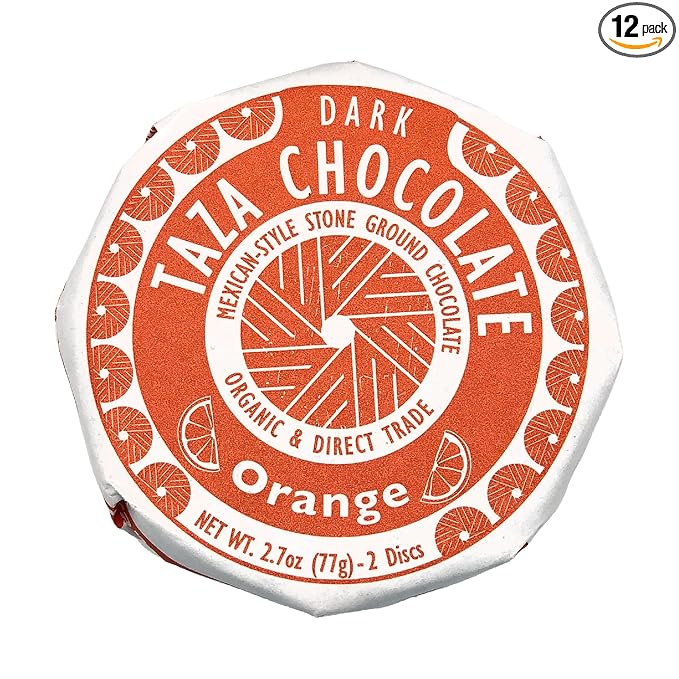 - Contains 12 - 2.7oz Orange (50% dark) Mexican-style Chocolate Disc