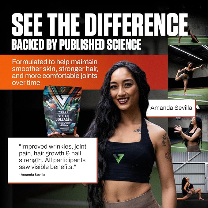 vedge Vegan Collagen Powder - Plant-Based Collagen Supplement for Hair, Skin, Nails, Joint & Gut Health. Collagen Peptides