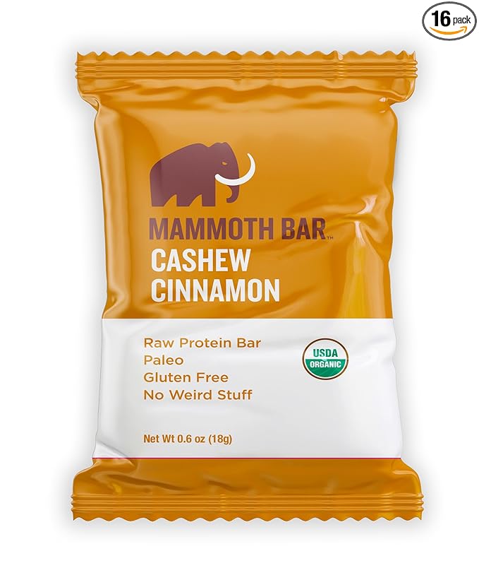 Mammoth Bar Cashew Cinnamon Mini Bar - Mini Organic Snack Bar Packed with 4g Protein. Made with Cinnamon, Paleo & Gluten Free • Raw - 16 Mini Bars
