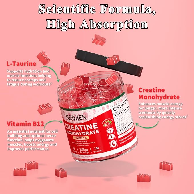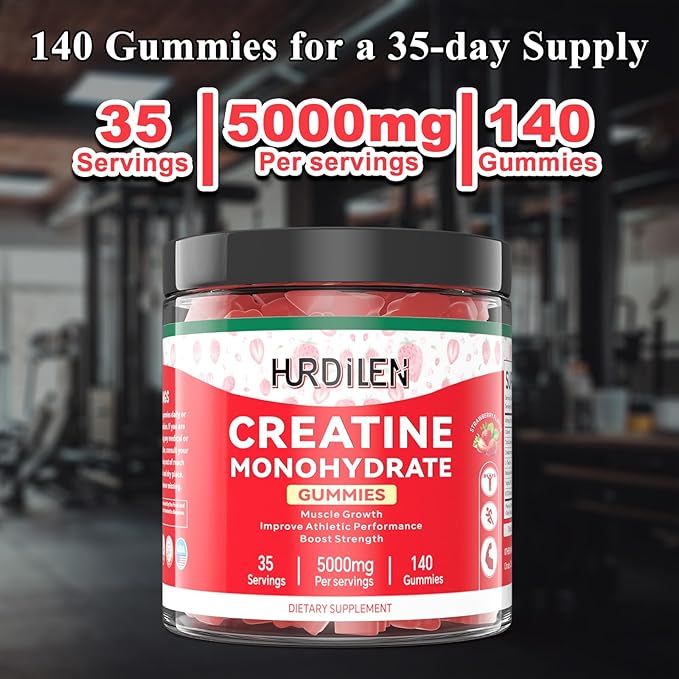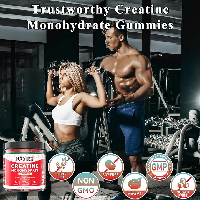 - HIGH QUALITY & SAFE SUPPLEMENT - Hurdilen Creatine Monohydrate Gummies are scientifically formulated and manufactured in a GMP compliant facility to ensure compliance with high quality, safe factory standards. 100% Pure, Vegan, Sugar Free, Non-GMO and Gluten Free, with a synergistic assortment of ingredients that work together to help you achieve optimal workout results.