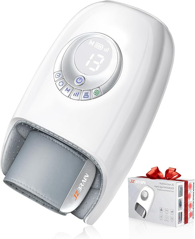 - 【Specialized Air Compression with Adjustable Wrist Support】Unlike traditional models, our independent airbag design applies precise air compression to your hand and wrist, helping reduce strain from repetitive motions and improving circulation. JZBRAIN hand massager size in 9.84 x 6.3 x 3.94 inches, the adjustable wrist strap provides a secure and comfortable fit, making it ideal for office workers, artists, and individuals experiencing wrist discomfort. Experience a gentle yet effective massage that enhances your overall hand relaxation and wellness