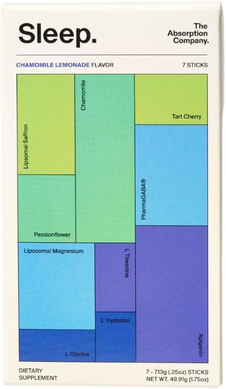 Sleep Aid Powder - Calming Drink for Deep Sleep with Liposomal Saffron, Magnesium & PharmaGABA Melatonin-Free Natural Supplement to Reduce Stress and Improve Sleep Quality Chamomile Lemonade 7 Sticks