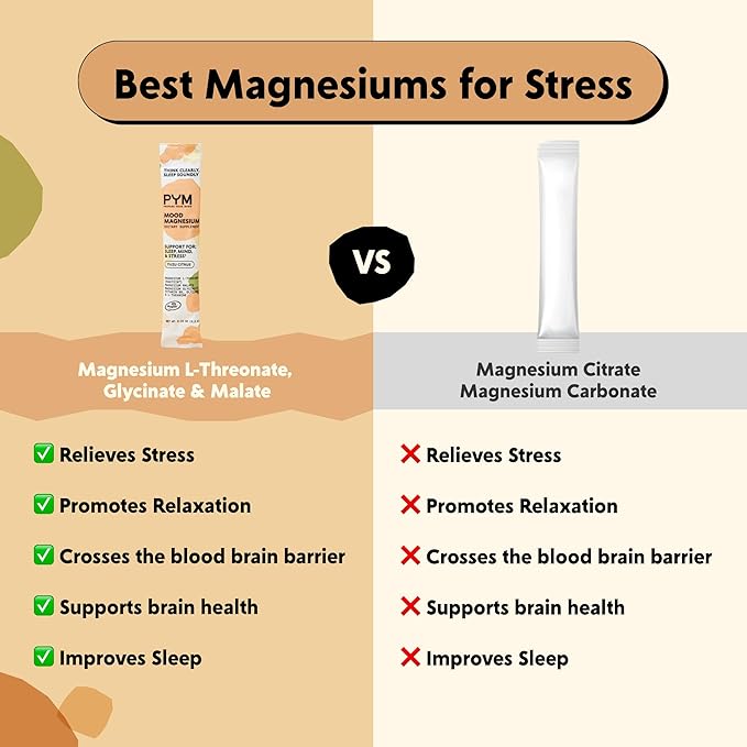 - Prepare Your Mind: PYM Mood Magnesium is formulated with a mindful blend of amino acids, magnesium, and vitamin B6 to fill your cup, support stress responses and help you sleep soundly. Our travel-ready stick packets make it easy for you to naturally relax while on the go.