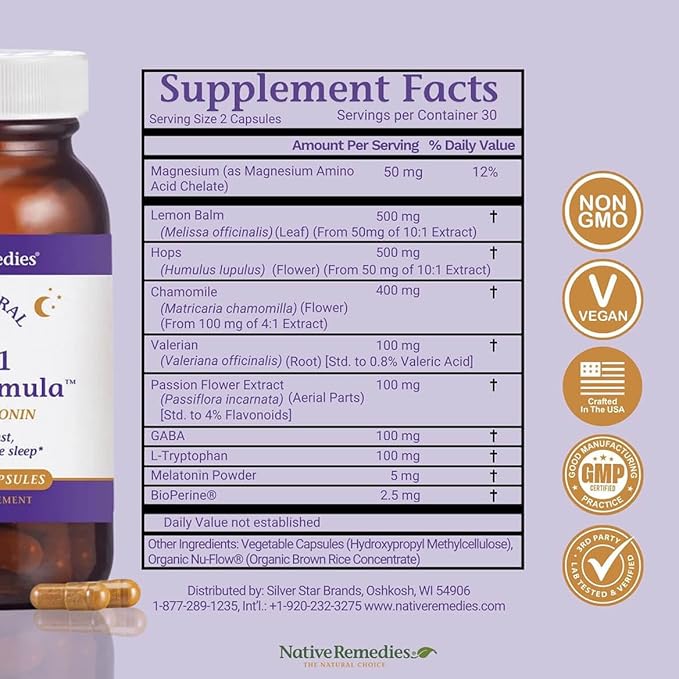 - GENTLE, NON-HABIT FORMING FORMULA: Made with vegan-friendly, non-GMO ingredients, this sleep support can be used nightly without dependency, providing safe, plant-based relaxation support to improve long-term sleep quality naturally.