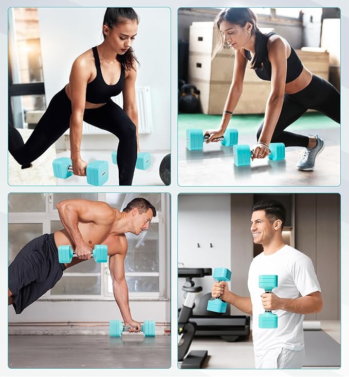 - 4 In 1 Adjustable Hand weights dumbbells set for men women. Our dumbbell sets consists of 8 weight 0.95lbs dumbbell plate, adjustable range is 4lb, 6lb, 8lb, 10lb each weight (A Pair 8lbs 12lbs 16lbs 20lbs).