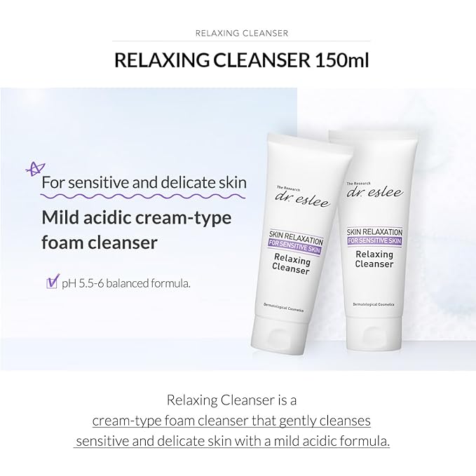 Foaming Facial Relaxing Cleanser for Sensitive Skin - 150ml – Dermatological Gentle Creamy Face Wash Cleansing Foam | pH 5.5-6 Balanced Formula | Moisturizing & Soothing Korean Skin Care