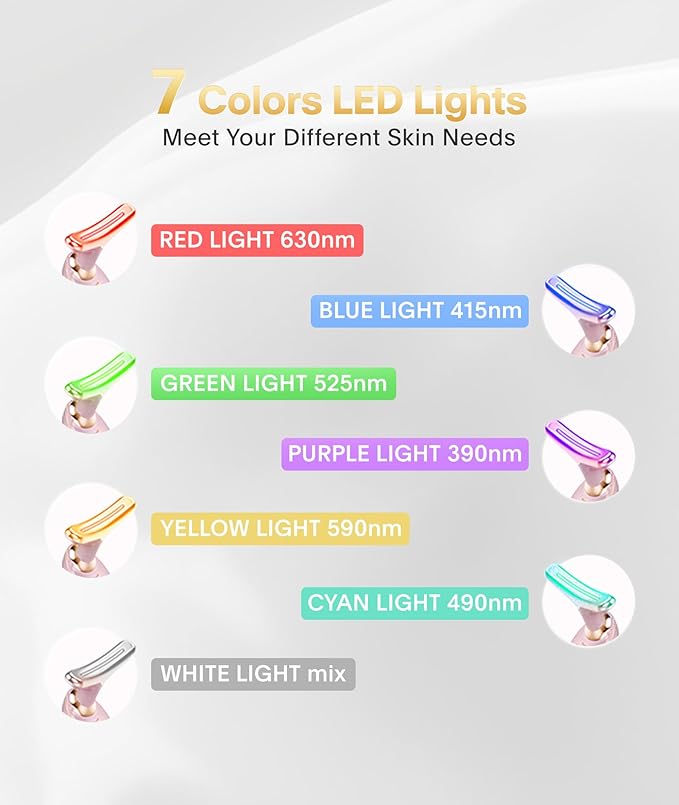 Light Based Face-Neck-Massager - 7 Color Portable Facial Massager for Skin Care, Glossy Pink
