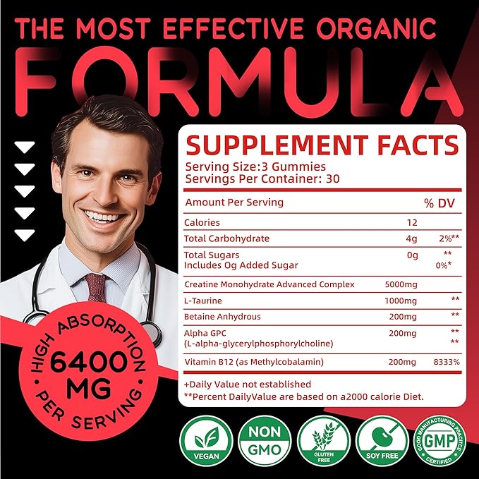 - Commitment to Excellence: Produced in a facility compliant with strict cGMP standards, our Creatine Monohydrate gummies, in Creatine, stands as a testament to our dedication to quality. You can trust in our product's consistency and excellence, batch after batch.
