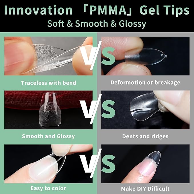 - No Trace Soft Gel Nail Tips: Crafted from gelly soft gel material, these fake nails leave no trace even when bent. Their bright clarity allows for easy pressing, trimming, and painting, helping you create your ideal nail shape effortlessly. Perfect for a true DIY manicure.
