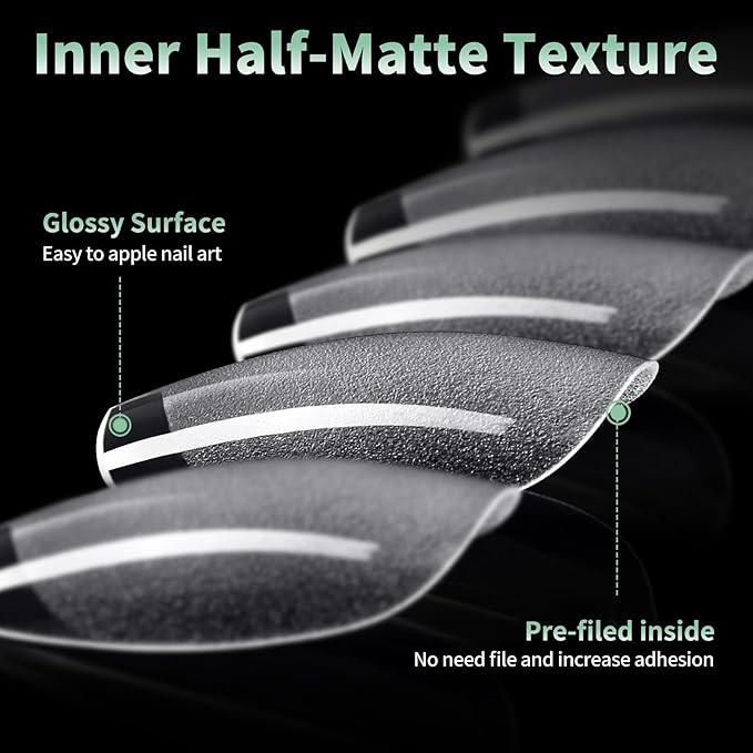 - Upgrade Ultra Matted Short Coffin Tips: Utilizes the latest 70 grit matte technology (others: >80 grit), not require filed, fit your nail directly and fit better. Save your filing time means make more nail fun, more friendly design for nail at home.