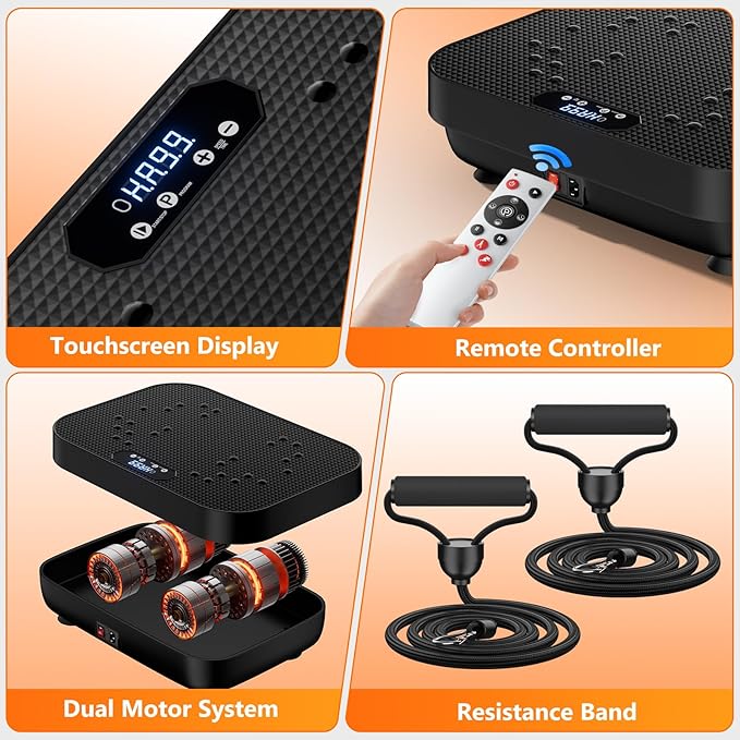 - Reliable Guarantee: Its quiet motor and anti-noise suction cups deliver a peaceful experience, making it perfect for home use without disturbing others.The bottom four anti-slip suction cups ensure stability of the vibration plate, preventing slipping and reducing exercise noise, ensuring minimal disturbance during workouts.Its maximum load-bearing capacity is 330 pounds