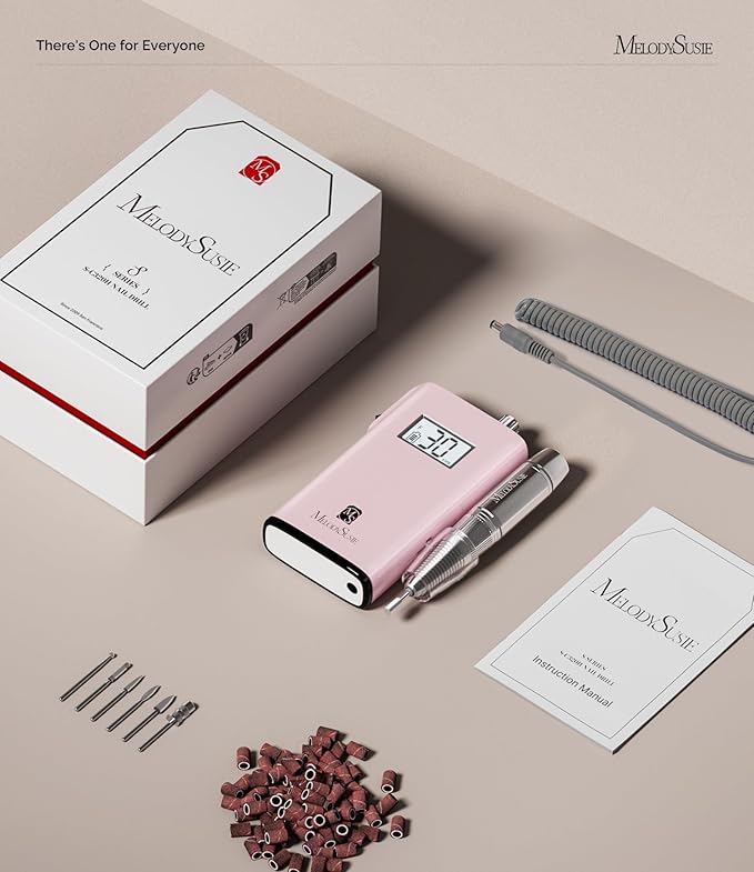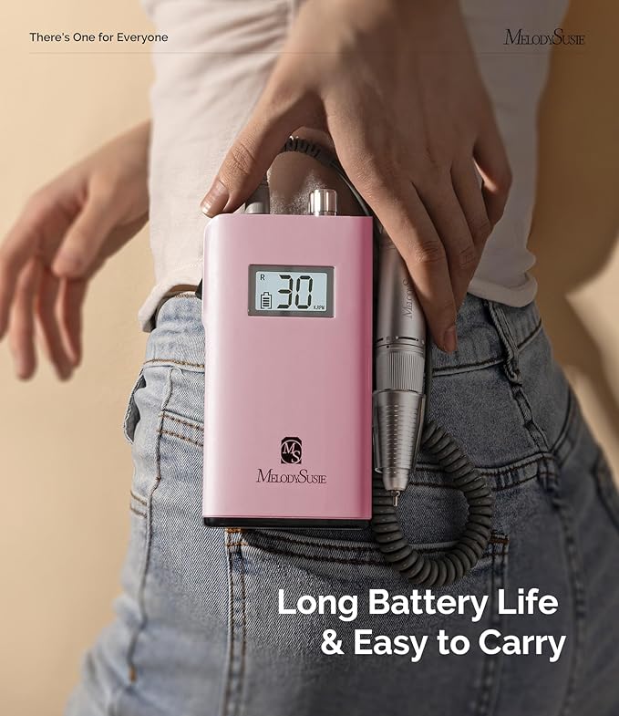 MelodySusie Professional Nail Drill, 30000 RPM Rechargeable Electric E File, SC320H Acrylic Gel Grinder Tools,Portable Nail Drill with 6 Bits Efile for Gel Nails Removing Manicure Pedicure Salon