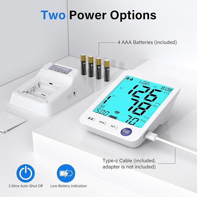 ADKING Automatic Upper Arm Blood Pressure Monitor Home Use, Large BP Cuff, Large Backlit Display, 2X500 Memories, Nylon Carry Case (Blue)